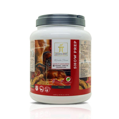 Julian & Jones Show Prep est conçu pour les cavaliers souhaitant améliorer la musculature de leur cheval, raffermir sa ligne du dessus et lui donner une allure athlétique. Ce complément alimentaire soutient l'organisme pendant l'entraînement en fournissant des nutriments soigneusement sélectionnés, adaptés aux chevaux en entraînement, en préparation de la saison de compétition ou après une période de repos.