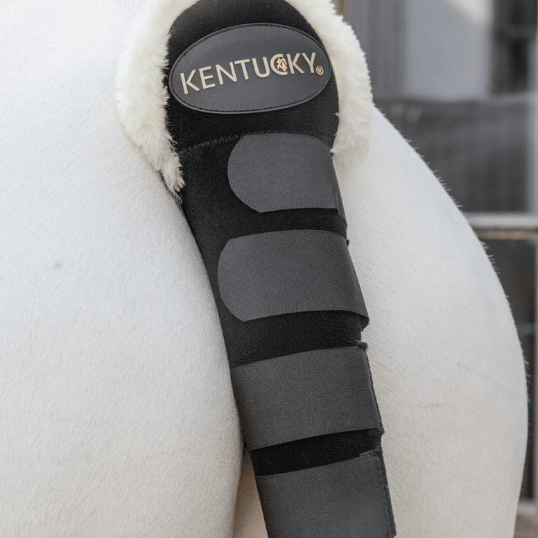 L'intérieur est entièrement doublé de la peau de mouton végane emblématique de Kentucky, qui prévient les frottements et les irritations – idéal pour les chevaux tondus ou les longs trajets. Grâce à ses fermetures auto-agrippantes robustes et réglables, la botte reste bien en place sans pincer ni glisser.