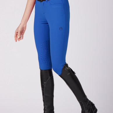 La bande de silicone au niveau des genoux assure un maintien fiable sans compromettre la flexibilité. La coupe classique et confortable offre une grande liberté de mouvement et procure une sensation de douceur et de maintien, même lors de longues séances d'entraînement ou de promenades à poney. Les finitions italiennes raffinées, avec leurs logos discrets et leurs lignes sportives, confèrent à ce pantalon à la fois fonctionnalité et style.