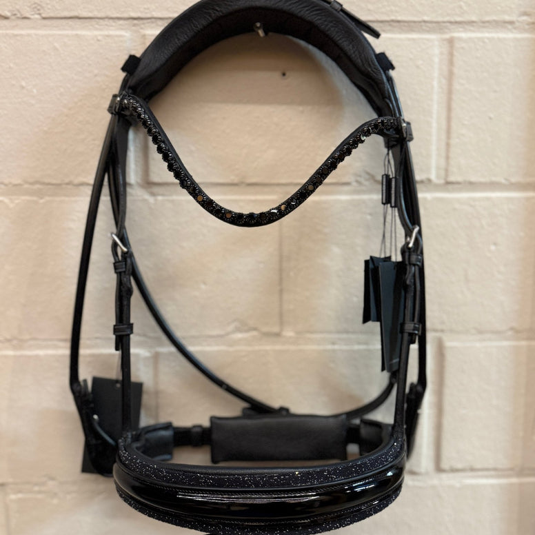 La muserolle profilée et anatomique est légèrement rembourrée, réduisant ainsi la pression sur les zones sensibles comme la pommette et l'arête du nez. La têtière est spécialement conçue autour des oreilles et possède un rembourrage supplémentaire pour éviter toute tension au niveau de l'encolure. Le bridon Miami est donc un excellent choix pour les chevaux sensibles ou délicats.