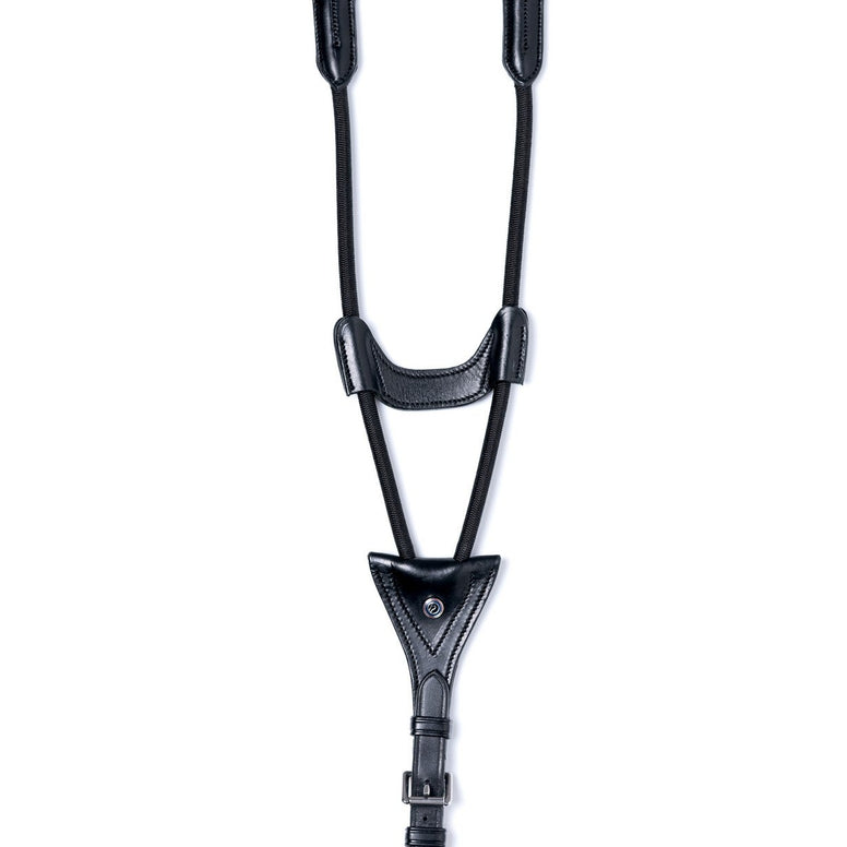 Soutien flexible et liberté de mouvement maximale : la martingale élastique Trust Valkenswaard offre un maintien subtil de la tête sans entraver les mouvements naturels du cheval. Idéale pour les cavaliers recherchant stabilité, confort et liberté.