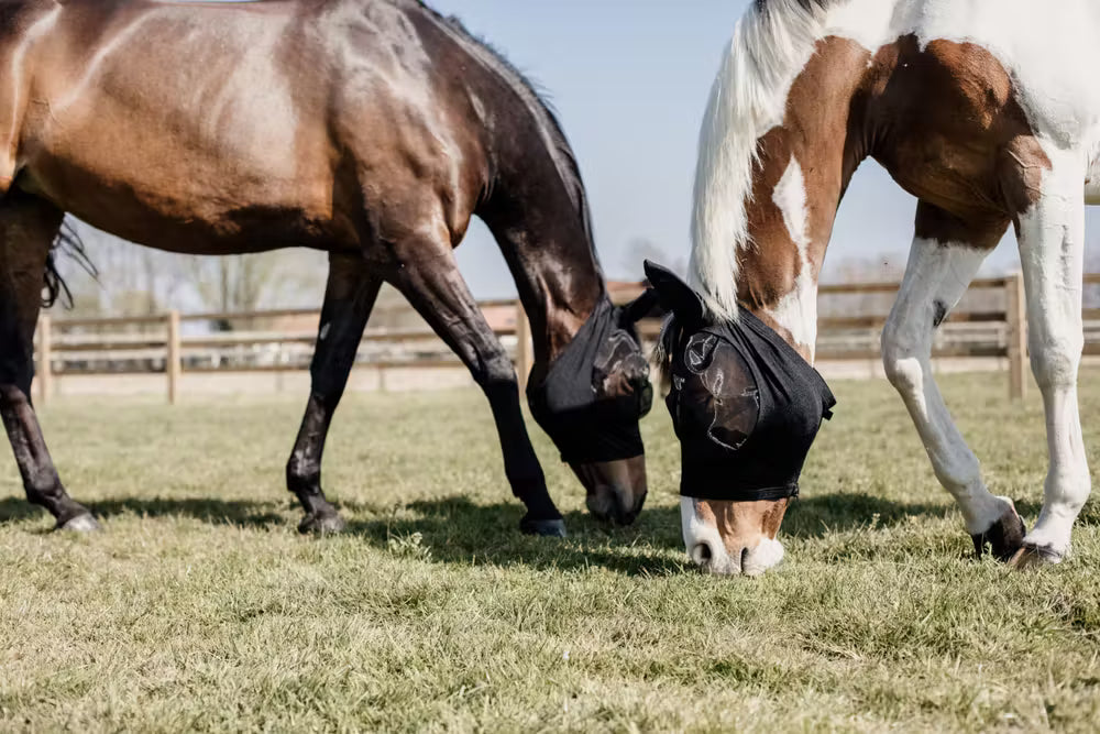 Idéal pour les chevaux sensibles aux mouches, au soleil ou à la pression autour de la tête – au pâturage, au paddock ou pendant les périodes de repos.