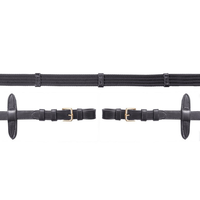 Ces rênes allient fonctionnalité et style, ce qui en fait un accessoire indispensable pour les cavaliers de dressage et de saut d'obstacles. Grâce à leur boucle de fermeture, elles sont faciles à utiliser et offrent une prise en main confortable.