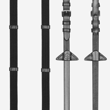 Douces au toucher, sans être rigides : l'association de cuir souple et de matière tissée rend ces rênes confortables et résistantes.
