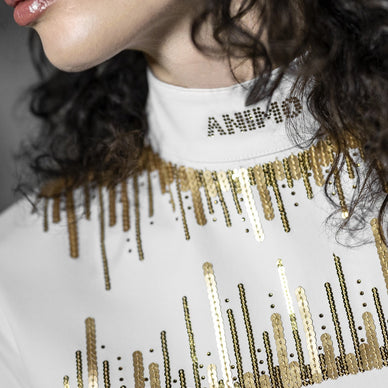Logo Animo en strass sur le col – Une finition luxueuse pour un look exclusif.