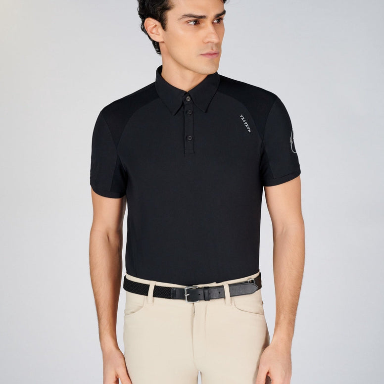 Le polo Vestrum Zandvoort est un polo raffiné à manches courtes, au style sportif et aux finitions luxueuses. Conçu en piqué technique de haute qualité, il offre une excellente respirabilité, une coupe flatteuse et une grande élasticité, idéale pour l'équitation et les activités à cheval. Son élégant logo Vestrum et son col raffiné en font le choix parfait pour l'entraînement comme pour les loisirs.