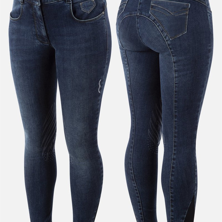 Maddelin tip: Deze rijbroek is ideaal voor stalgebruik of trainingen waarbij je ook naast het paard actief bent, dankzij het comfortabele denimgevoel en de sportieve ondersteuning in het zadel.