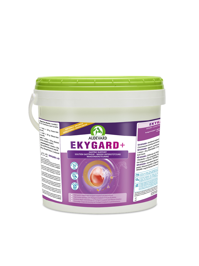 De Audevard Ekygard+ is een voedingssupplement dat speciaal is ontwikkeld om de maaggezondheid van paarden te ondersteunen. Het biedt drievoudige bescherming: het helpt de maagzuurgraad te bufferen, ondersteunt de maagwand en balanceert de darmflora.