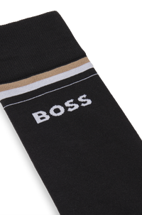 Dankzij de lichte technische stof blijven je voeten koel en droog, zelfs tijdens intensieve ritten. De verstevigde zones aan hiel en tenen zorgen voor extra ondersteuning en slijtvastheid, terwijl de hoge schacht voorkomt dat de sokken afzakken. Het elegante design met subtiele BOSS-branding maakt deze sokken niet alleen functioneel, maar ook stijlvol tot in het detail.
