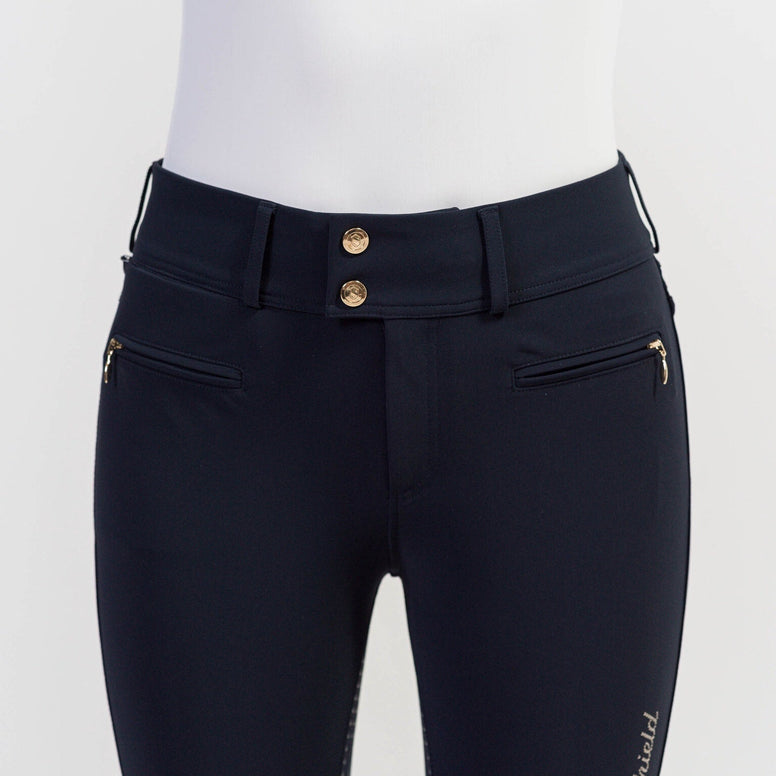De elastische beensluiting voorkomt drukpunten in je laarzen, terwijl het ademende materiaal je koel en comfortabel houdt – zelfs bij zomerse temperaturen of langdurige trainingssessies. De subtiele details, zoals het glanzende Samshield-logo en de nette afwerking, maken van deze rijbroek een echte eyecatcher.