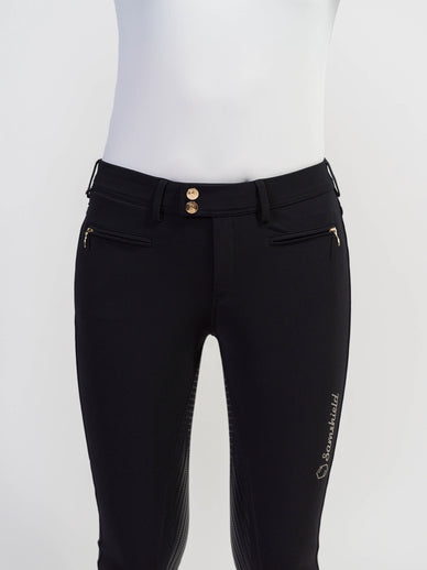 De Diane Boreal Champagne combineert technische eigenschappen met een vrouwelijke, gestroomlijnde look. Dankzij de elastische beensluitingen past de broek moeiteloos in je rijlaarzen. Het ton-sur-ton Samshield-logo met subtiel kristalaccent maakt de stijlvolle afwerking compleet.