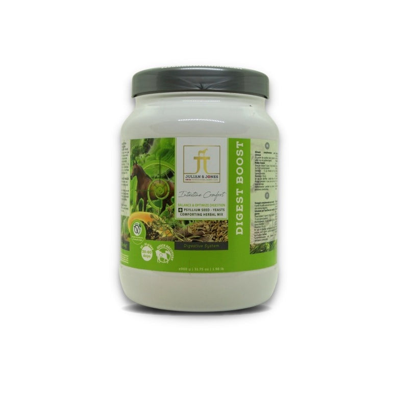 Een gezond paard begint bij een gezonde darm! Julian & Jones Digest Boost is een krachtig supplement dat de spijsvertering optimaliseert en de darmflora versterkt – de sleutel tot betere weerstand, optimale opname van voedingsstoffen en meer energie.