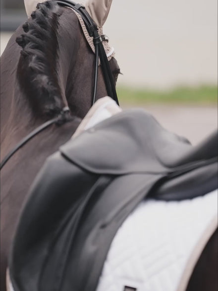 Maddelin tip: Combineer met zandkleurige of crèmekleurige accessoires voor een harmonieuze en verfijnde dressuurset.