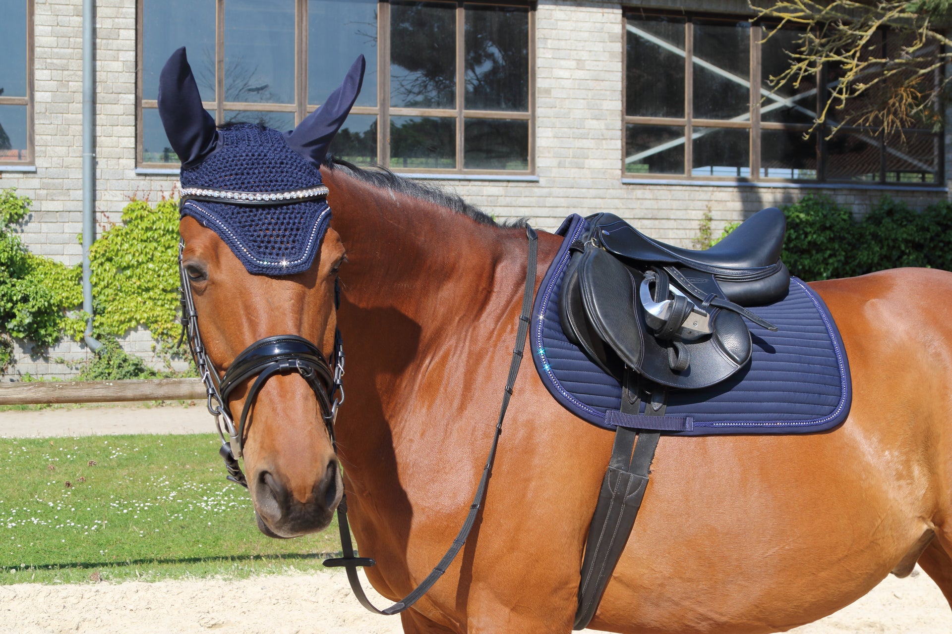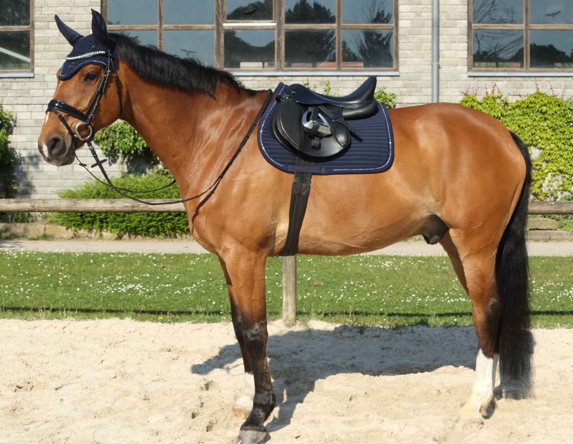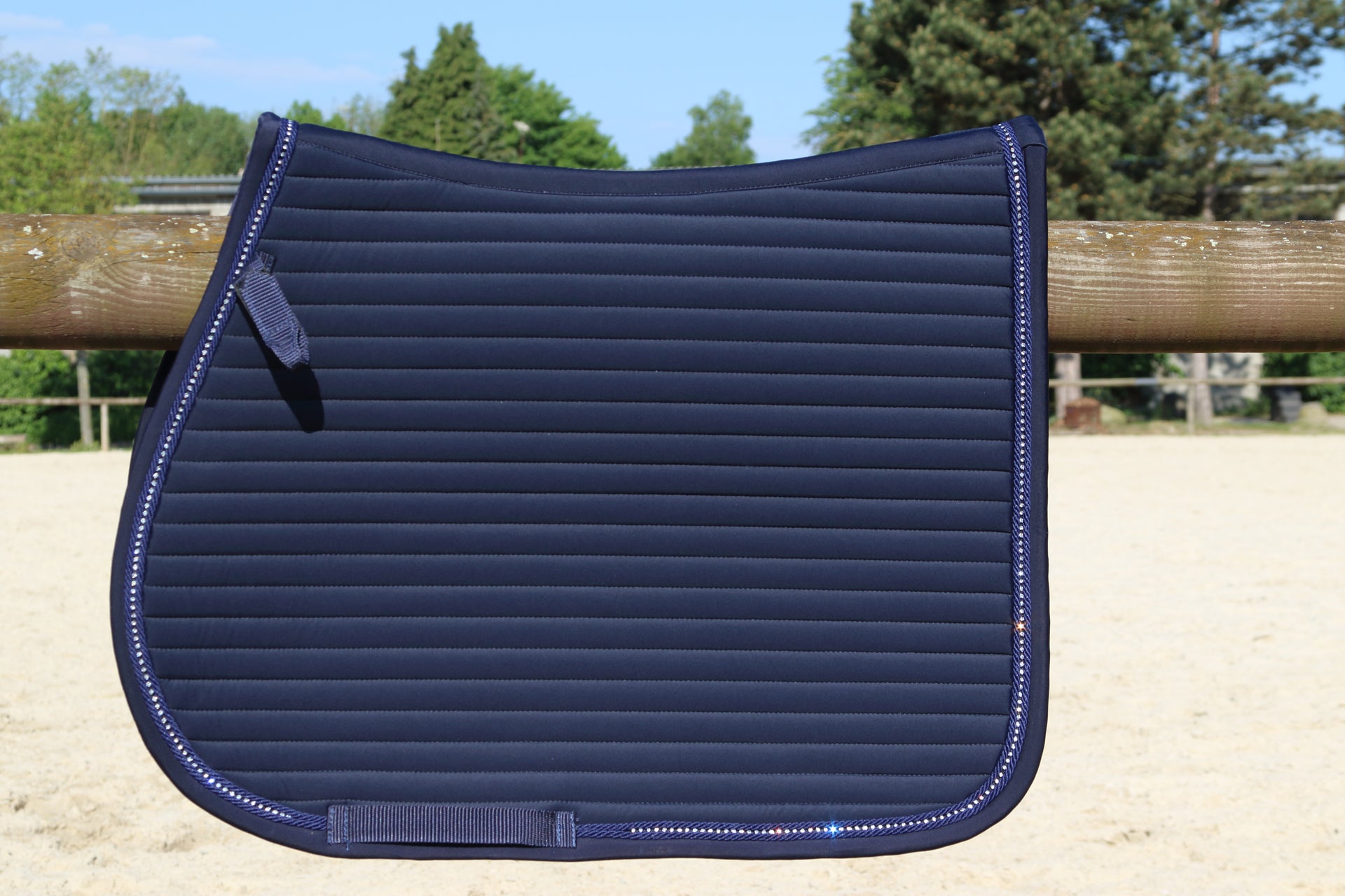 Het Euroriding zadeldek Bright is de perfecte keuze voor ruiters die elegantie willen combineren met functionele prestaties. Dit zadeldek valt meteen op door de subtiele, glanzende kristallen die zorgen voor een luxueuze uitstraling in de piste of tijdens training. Ideaal voor wie net dat beetje extra uitstraling zoekt zonder in te leveren op comfort voor het paard.