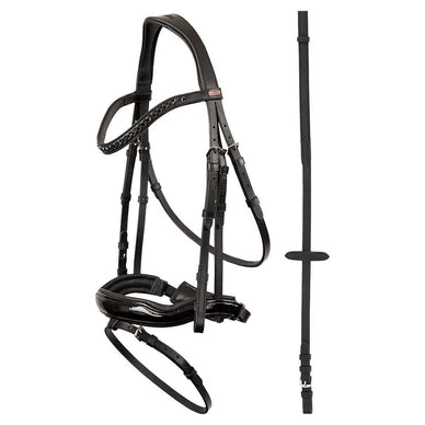 Met het Premiere Lorient Lacque hoofdstel geef je jouw paard een anatomisch verantwoord hoofdstel met een luxueuze uitstraling – voor comfort én klasse in de piste.