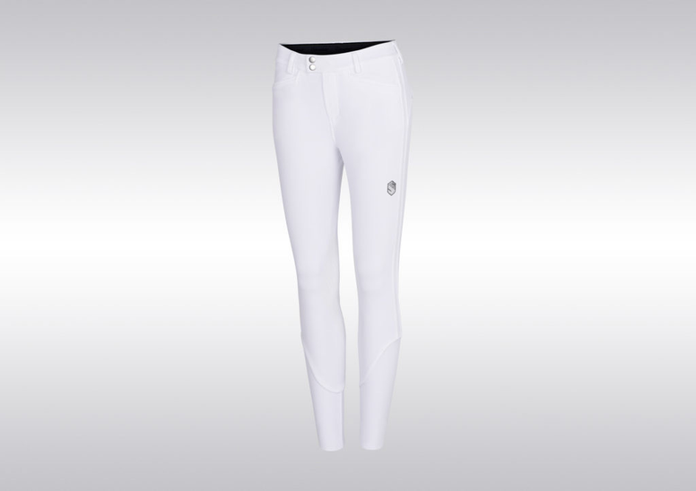 Elastische beensluiting: Slanke stretch inzet bij de enkels zorgt voor extra comfort onder rijlaarzen, zonder vervelende naden of drukpunten.