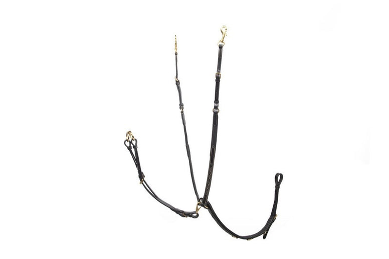 De LJ Leathers jachtmartingaal met kort elastiek is een slimme combinatie van klassieke uitstraling en moderne functionaliteit. Gemaakt van sterk buffel leder, afgewerkt met stijlvol sierstiksel en voorzien van messing gespen voor een duurzame, luxe afwerking. Het geïntegreerde korte elastiek zorgt voor extra flexibiliteit en comfort voor je paard, terwijl de karabijnhaakbevestiging een snelle en veilige montage aan het zadel mogelijk maakt.