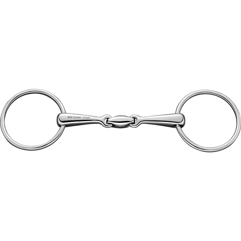 Het Sprenger MAX-Control Bit is een innovatief dubbelgebroken bit dat optisch lijkt op een standaard dubbelgebroken model, maar een uniek vergrendelingsmechanisme bevat. Dit mechanisme activeert zich wanneer het paard sterk wordt of zich verzet tegen de hand, waardoor het bit tijdelijk verstijft en een lichte stangwerking biedt. Zodra het paard weer nageeft, wordt het bit weer soepel en flexibel, wat nauwkeurige en verfijnde communicatie mogelijk maakt.