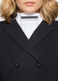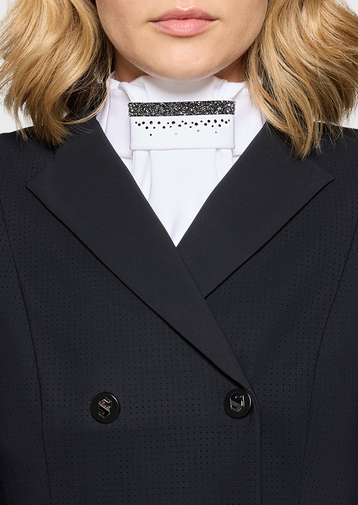 De hoogwaardige technische stof voelt licht en comfortabel aan en blijft mooi in vorm tijdens het rijden. Hierdoor behoudt de plastron een verzorgde en strakke uitstraling onder het wedstrijdjasje, zelfs tijdens lange wedstrijddagen. Dankzij de ademende eigenschappen blijft hij aangenaam dragen en biedt hij optimaal comfort zonder in te leveren op stijl.