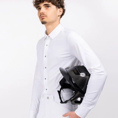 Het Freejump Marvick Shirt Men is ontwikkeld voor ruiters die hun prestaties serieus nemen en tegelijk houden van een strakke, stijlvolle uitstraling in de ring. Dankzij de naadloze, thermo-gelijmde afwerking voelt dit wedstrijdshirt aan als een tweede huid: geen schurende naden, geen overtollige stof, alleen comfort en controle.