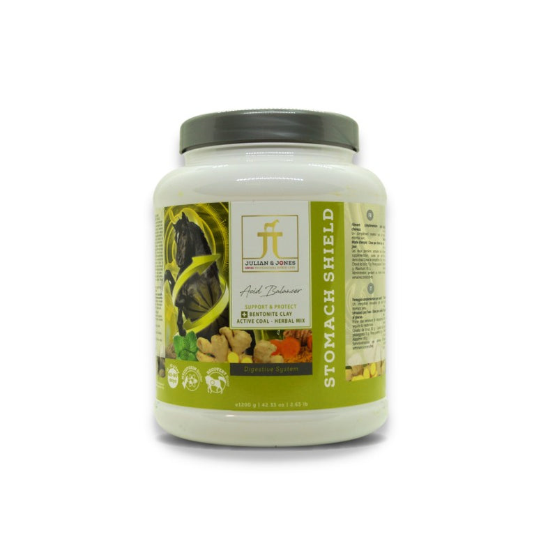 Met Julian & Jones Stomach Shield ondersteun je op een natuurlijke manier de maaggezondheid van je paard en bescherm je het maagslijmvlies tegen verzuring, stress én mycotoxinen.