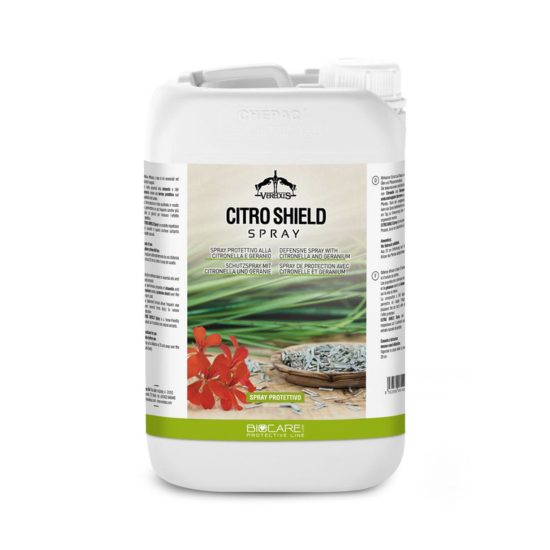 De Veredus Citro Shield Insectenspray is een krachtige maar huidvriendelijke insectenwerende spray op basis van natuurlijke plantaardige extracten zoals citronella, geraniol en eucalyptusolie. Deze spray vormt een beschermende geurbarrière tegen vliegen, muggen, dazen en andere vervelende insecten, zonder agressieve chemicaliën. Perfect voor gebruik op stal, tijdens het rijden of in de weide.