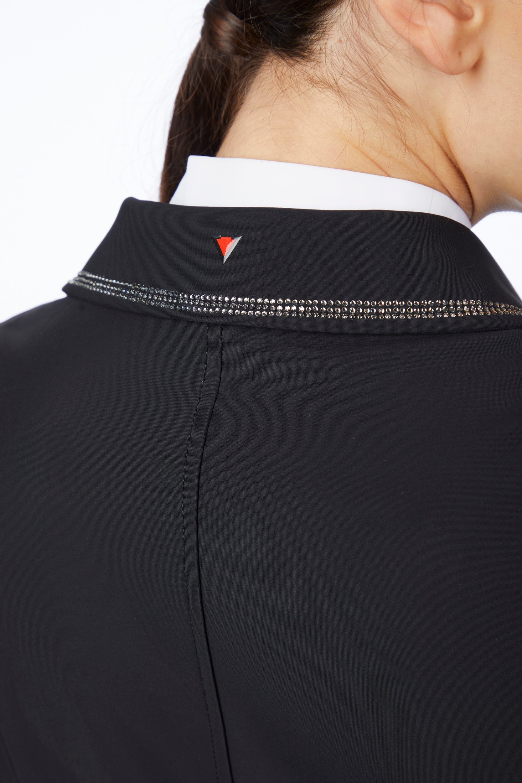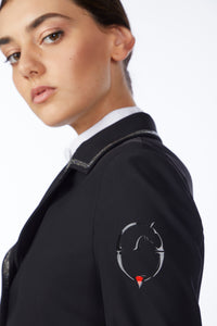 De RS-uitvoering staat voor een extra verfijnde, sportieve afwerking met subtiele details die het verschil maken. De strakke lijnen, hoogwaardige knopen en luxueuze afwerking geven deze dames wedstrijdjas een krachtige, professionele uitstraling. Dit is een jas voor ruiters die niet alleen willen deelnemen, maar willen overtuigen.