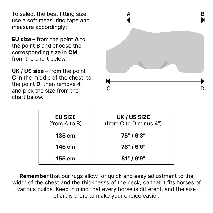 Een goed passende outfit zorgt niet alleen voor meer comfort, maar ook voor betere prestaties in het zadel. Te strakke of te losse kleding kan je bewegingsvrijheid beperken en je hulpen beïnvloeden. Daarom raden we aan om steeds nauwkeurig te meten en onze maattabellen als leidraad te gebruiken.